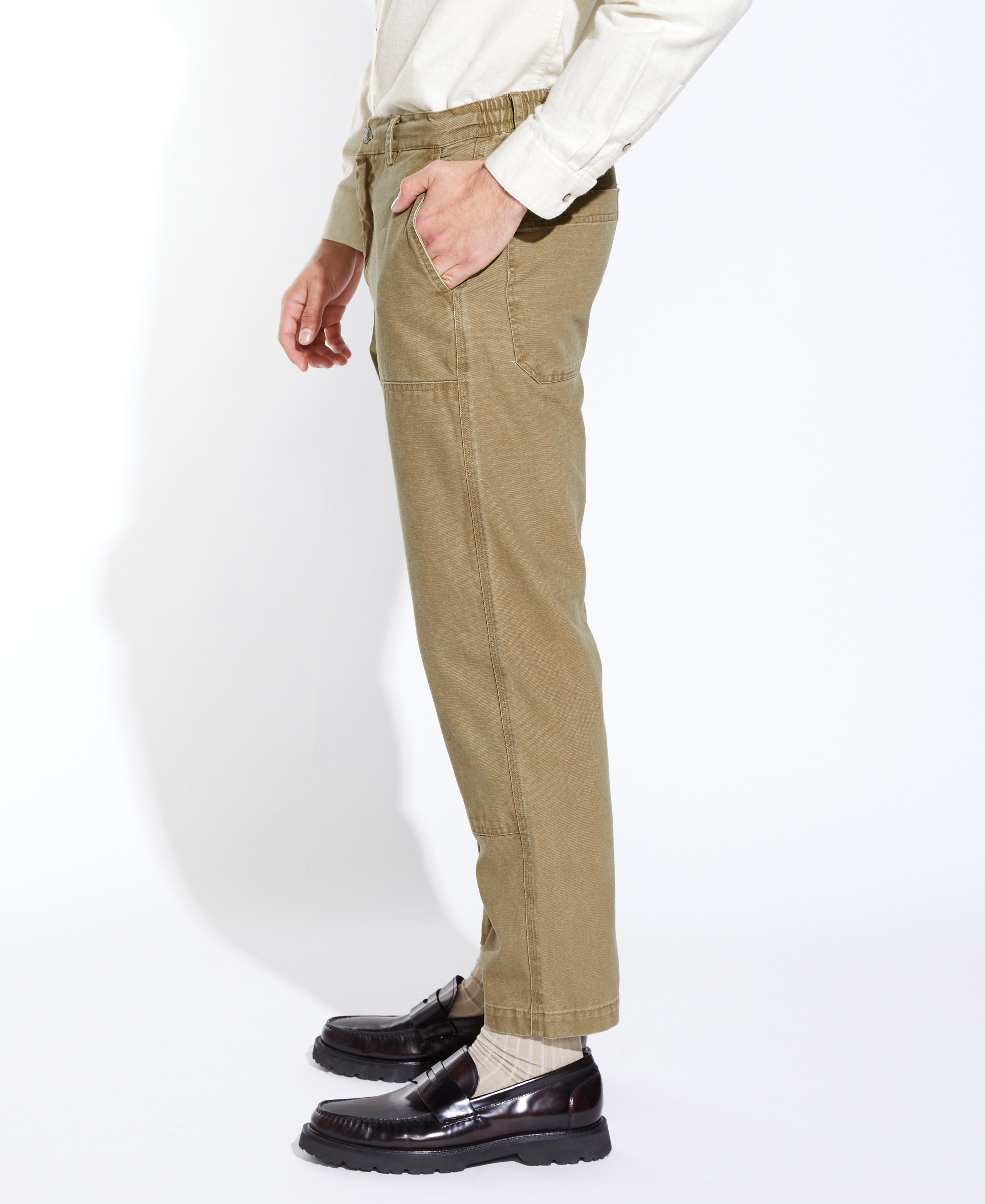 Our take on the classic workwear pant, the Chuck workwear pant features an elasticated waist for better fit and comfort, double knee detail that provides both functionality and design and stonewashing for that worn-in look. Cut in our CLASSIC STRAIGHT fit, the Chuck workwear pant features a comfortable straight leg with an ankle-length inseam for a more contemporary look.