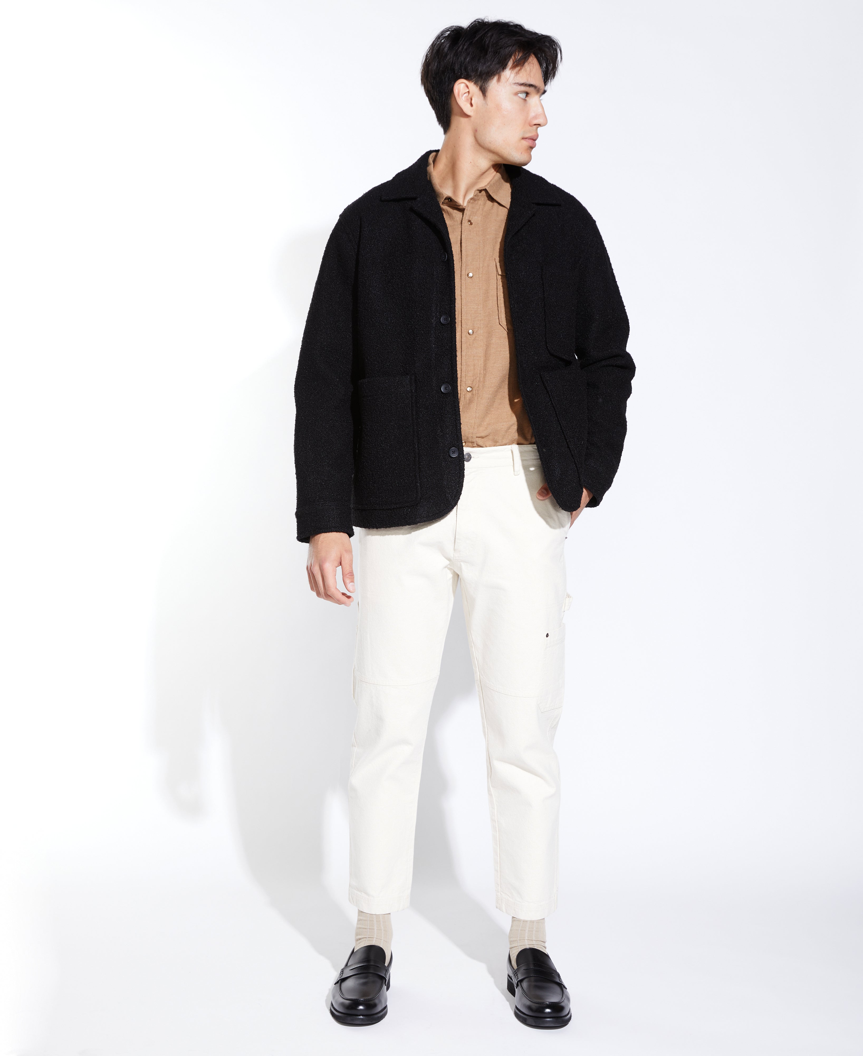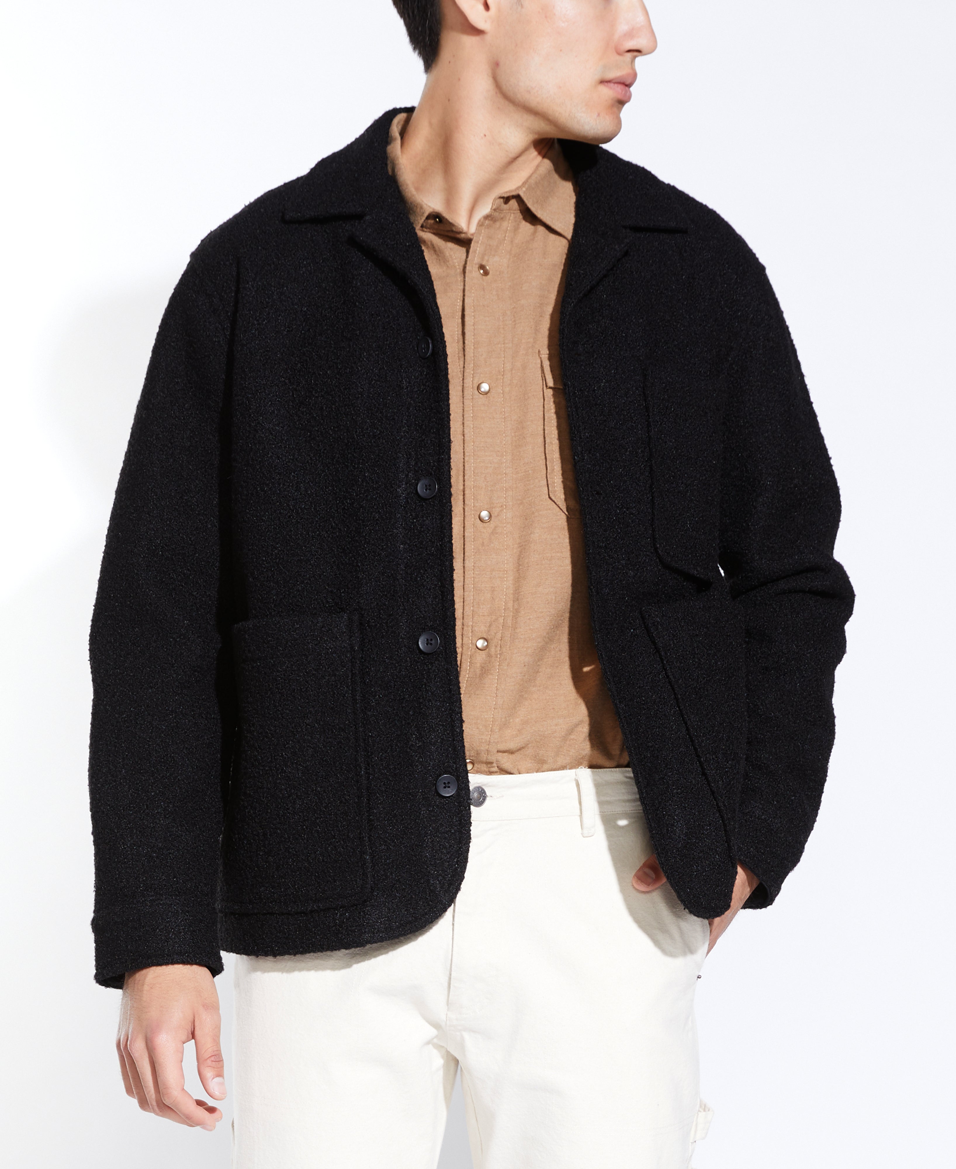 We combined the clean, tailored look of a chore coat with a plush and lofty bouclé knit and ended up with our Abbott walking coat. With a rugged-meets-sophistication vibe, the Abbott jacket exudes both function and style and looks great whether you're out on a stroll in the moorlands or simply strolling through the city. Cut in a relaxed fit for both ease and comfort.