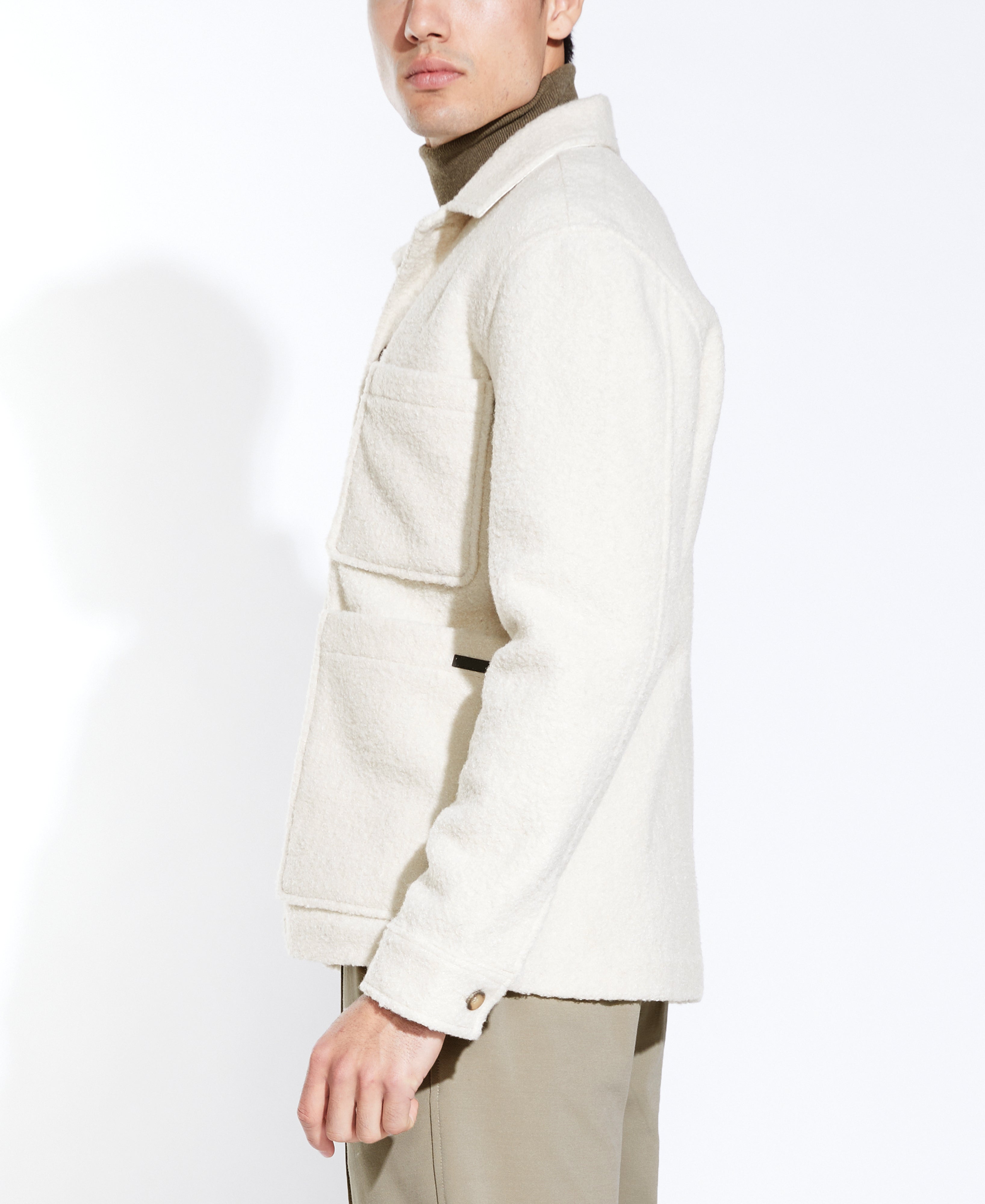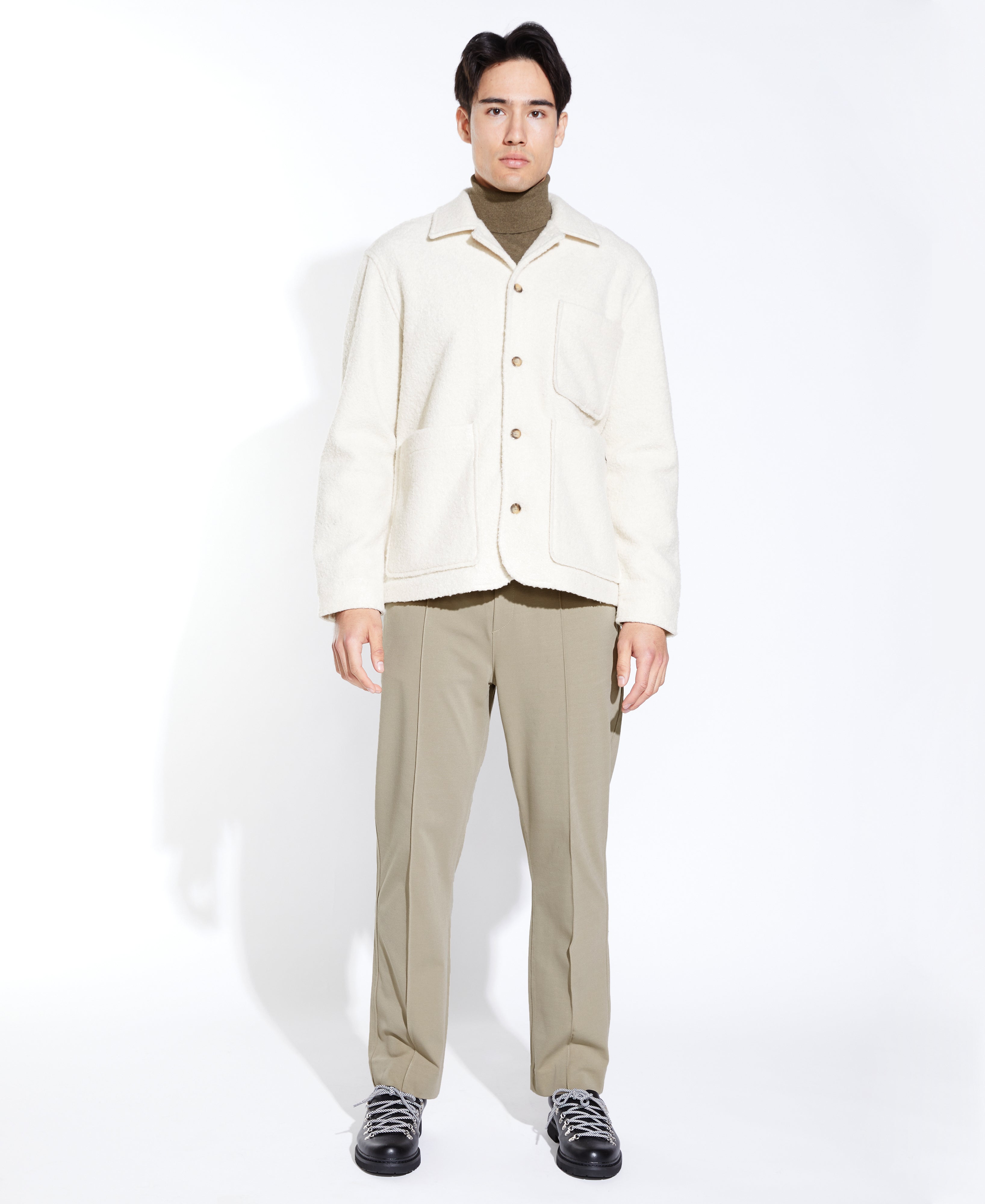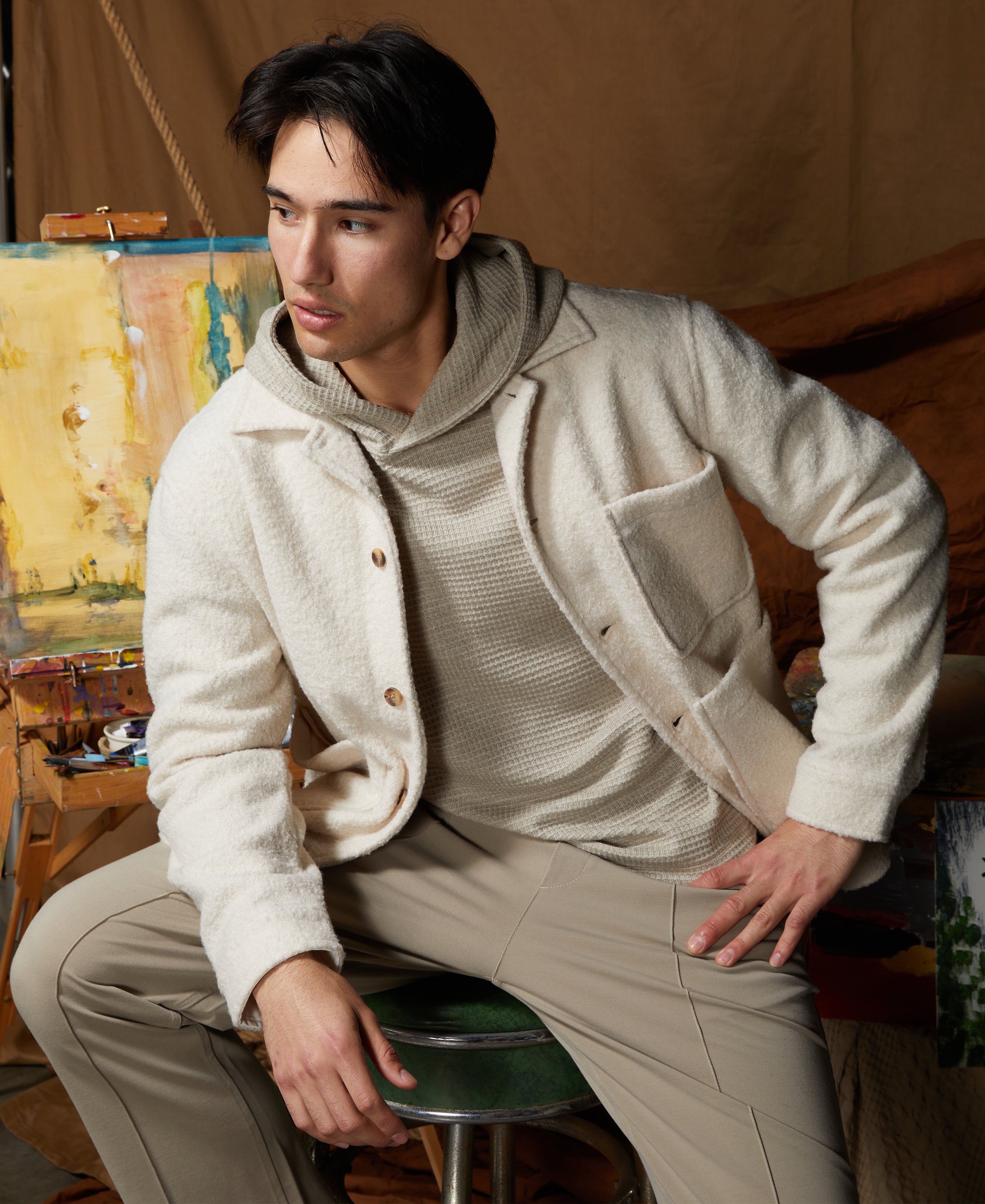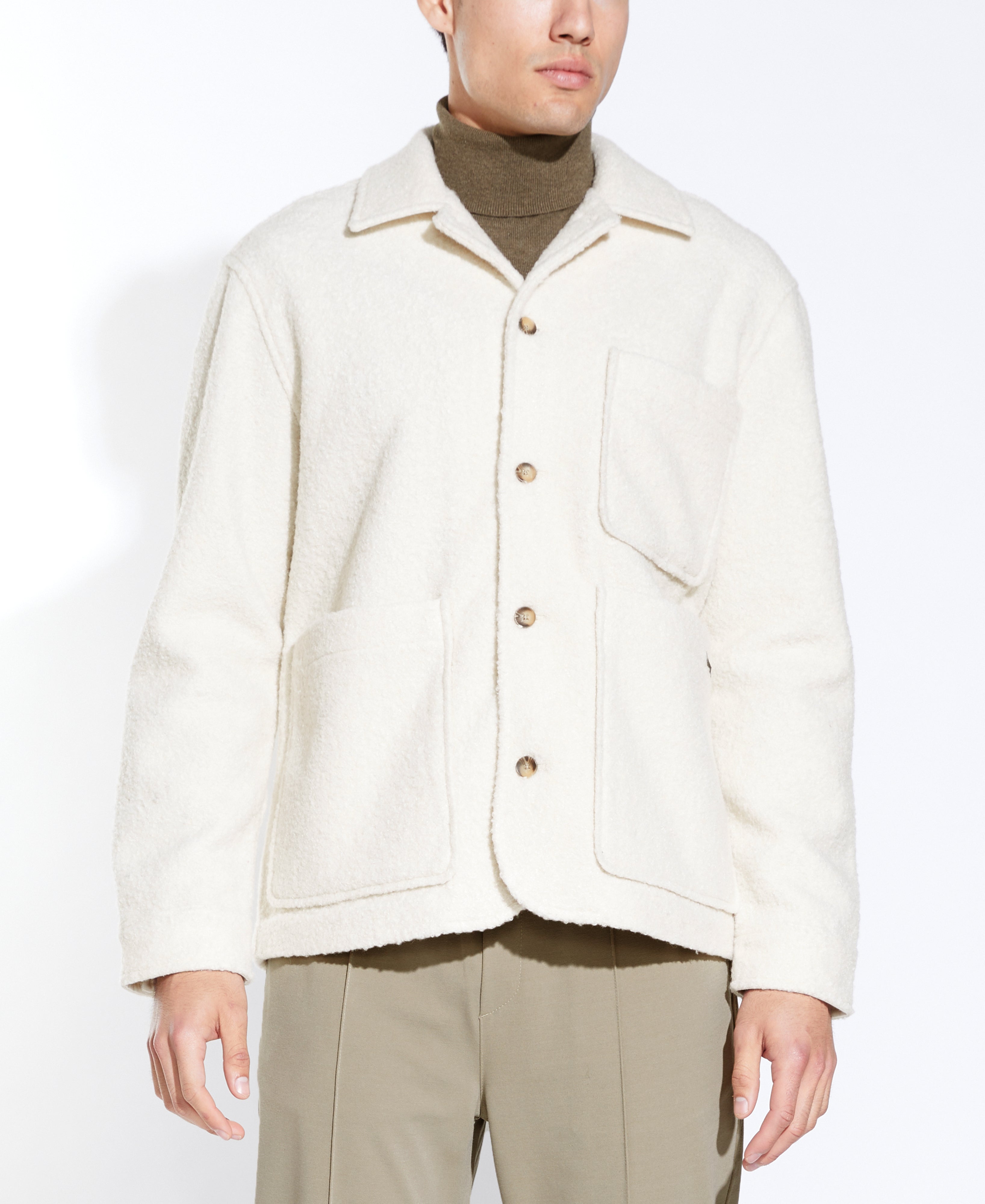 We combined the clean, tailored look of a chore coat with a plush and lofty bouclé knit and ended up with our Abbott walking coat. With a rugged-meets-sophistication vibe, the Abbott jacket exudes both function and style and looks great whether you're out on a stroll in the moorlands or simply strolling through the city. Cut in a relaxed fit for both ease and comfort.