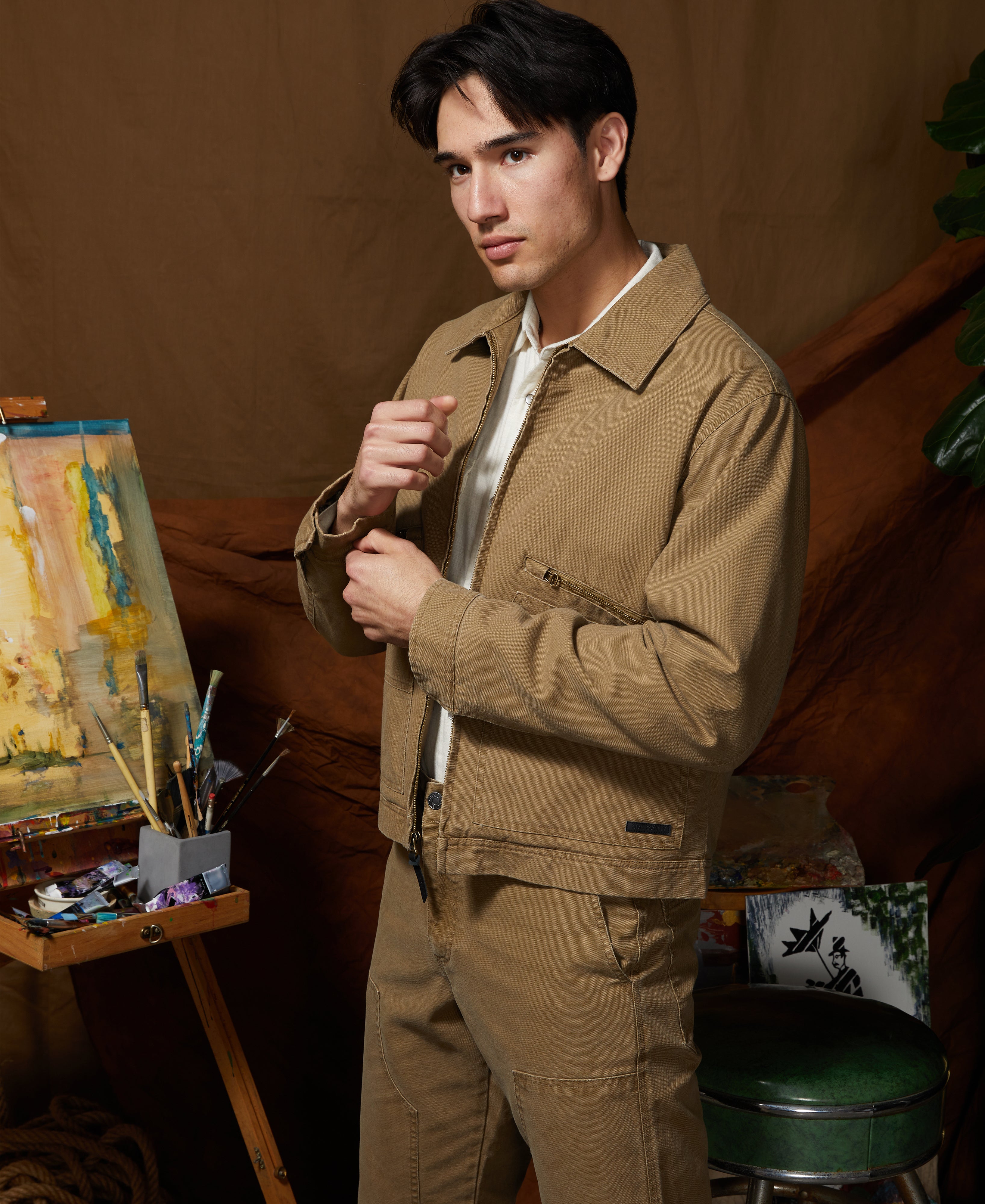 ALDRICH | cropped zip workwear jacket | tobacco