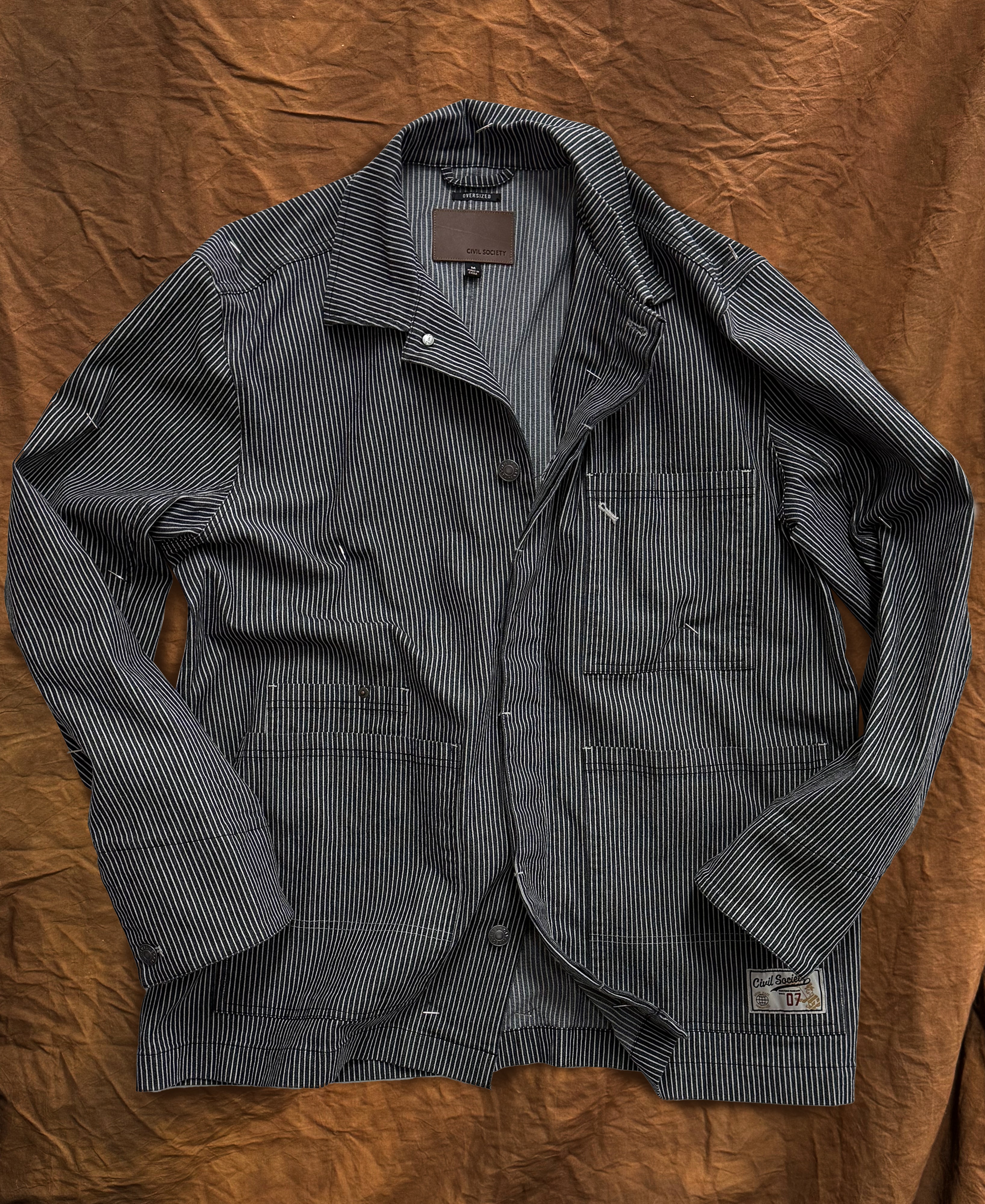 All aboard! An homage to the rail industry of the 19th century, this railroad striped coat is a statement piece that boasts a very on-trend oversized fit making it perfect for layering, utility chest and hip pockets, contrast stitching details, our very own special workwear-inspired labeling, signature tack buttons and rivets and a hidden front placket for added sophistication.