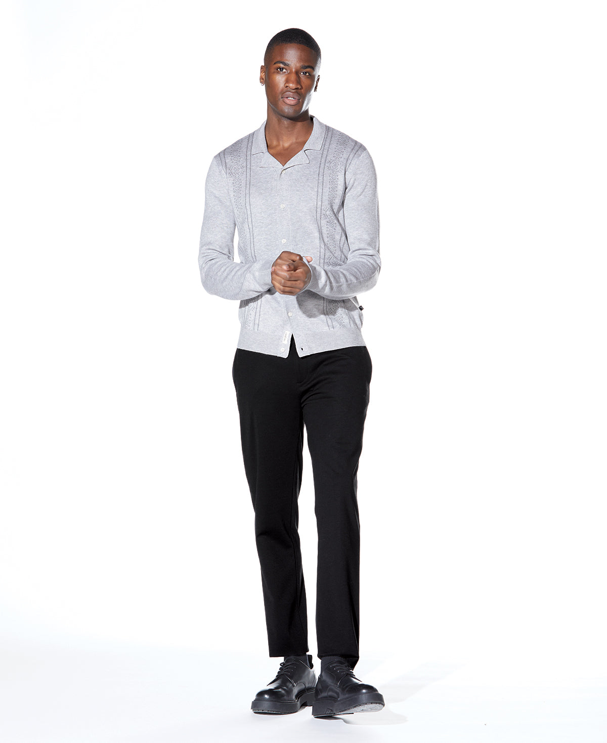 LUIGI | sweater knit camp shirt | heather gray