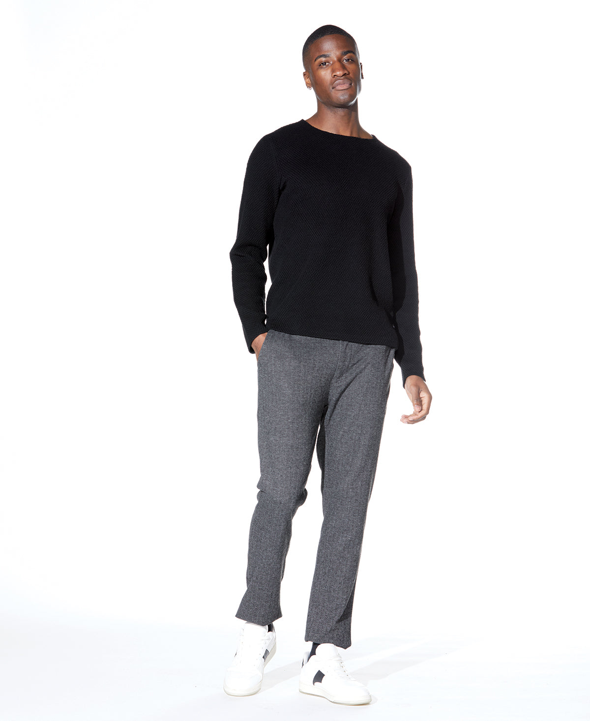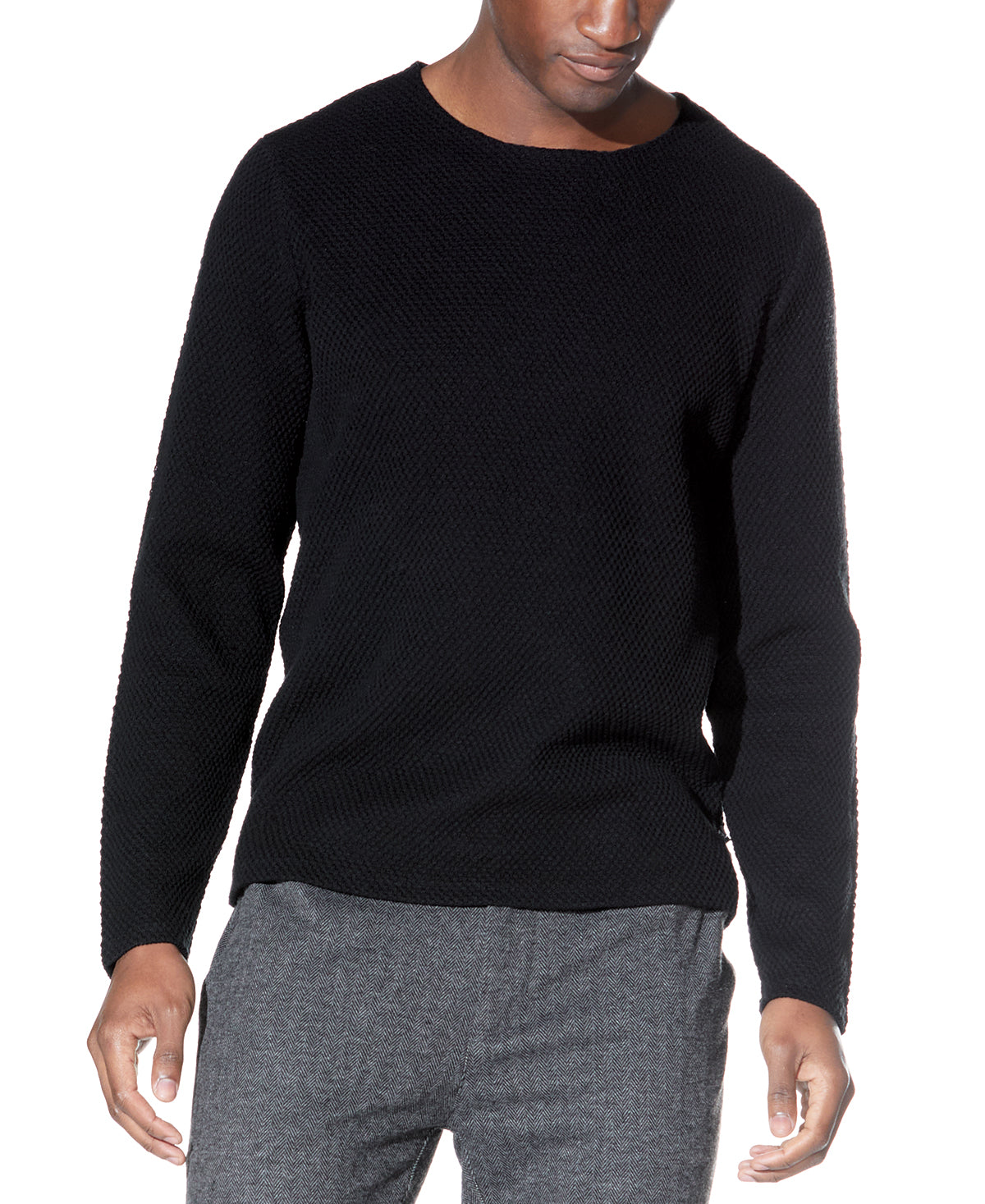 Long sleeve sweater in super soft cotton waffle sweater knit