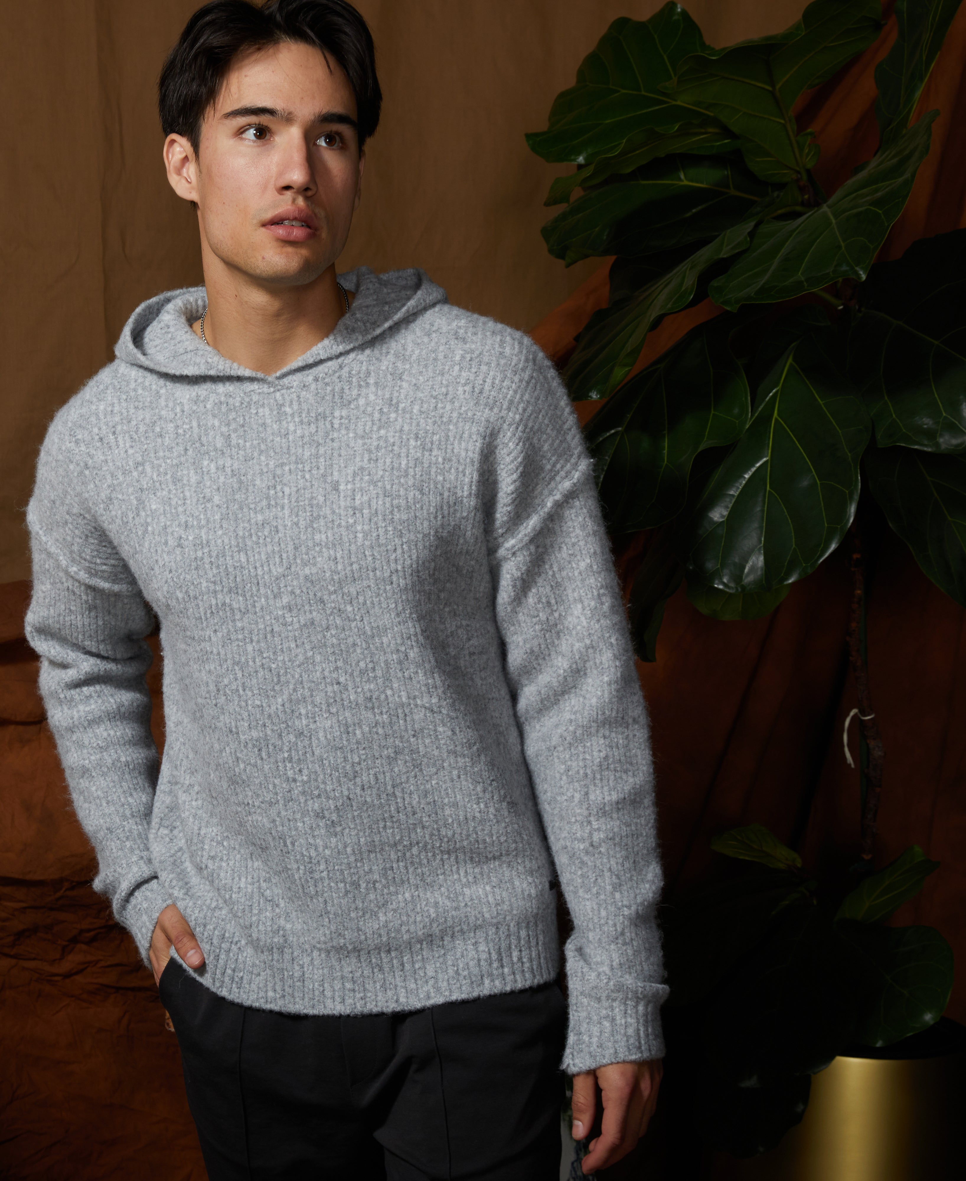 Embrace your inner softie in our fuzzy sweater hoodie! Cut in our new oversized fit, the AVERY sweater hoodie features a super plush and fuzzy 1x1 chunky sweater rib knit, exaggerated drop shoulders and a very loose and comfortable fit around the body.