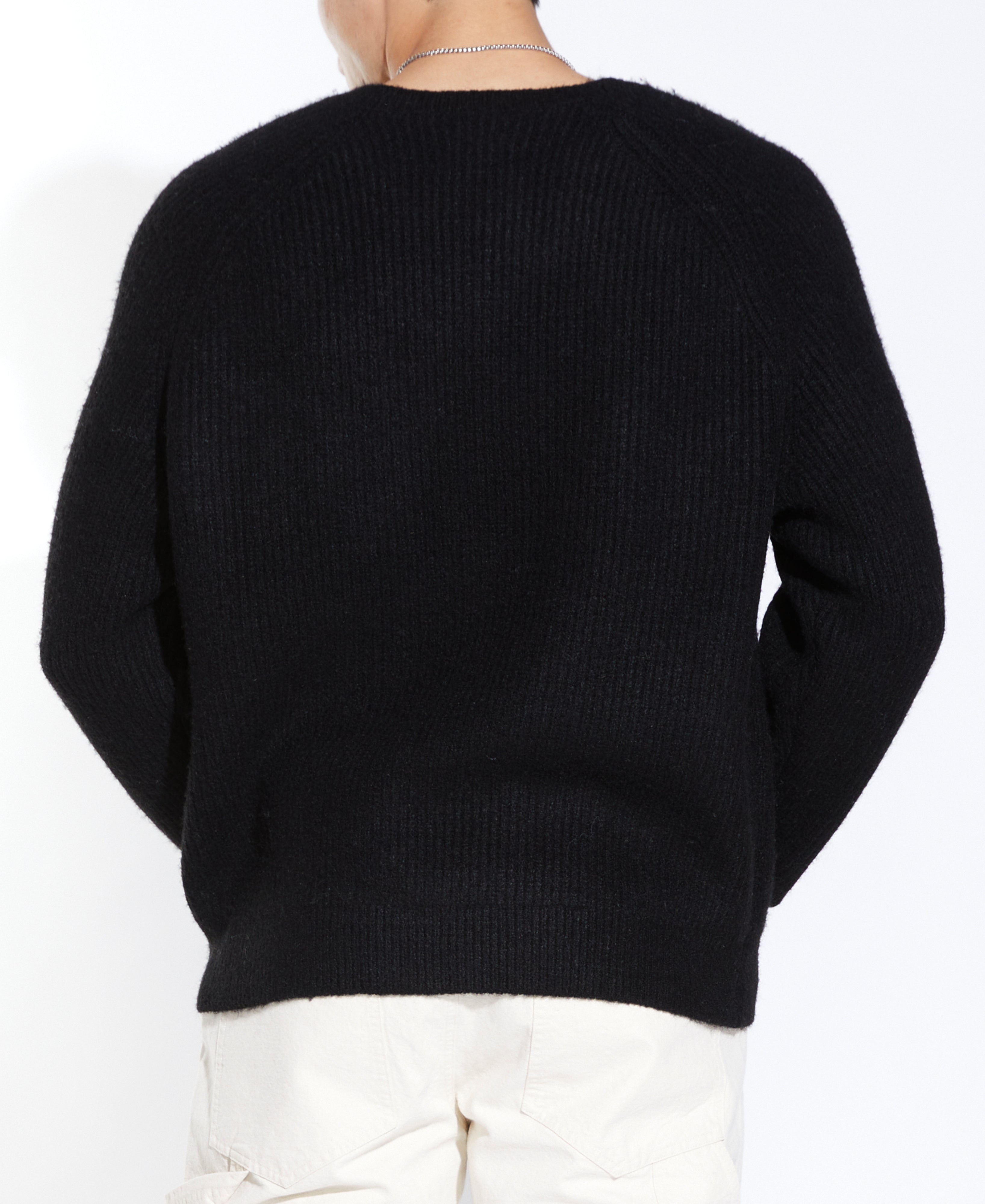 A classic staple with a modern twist. We upgraded the classic crewneck raglan sweater by issuing it in our new oversized fit ensuring a very loose and comfortable fit around the body as well as using a super plush and fuzzy 1x1 chunky sweater rib knit which you can either dress up or down.