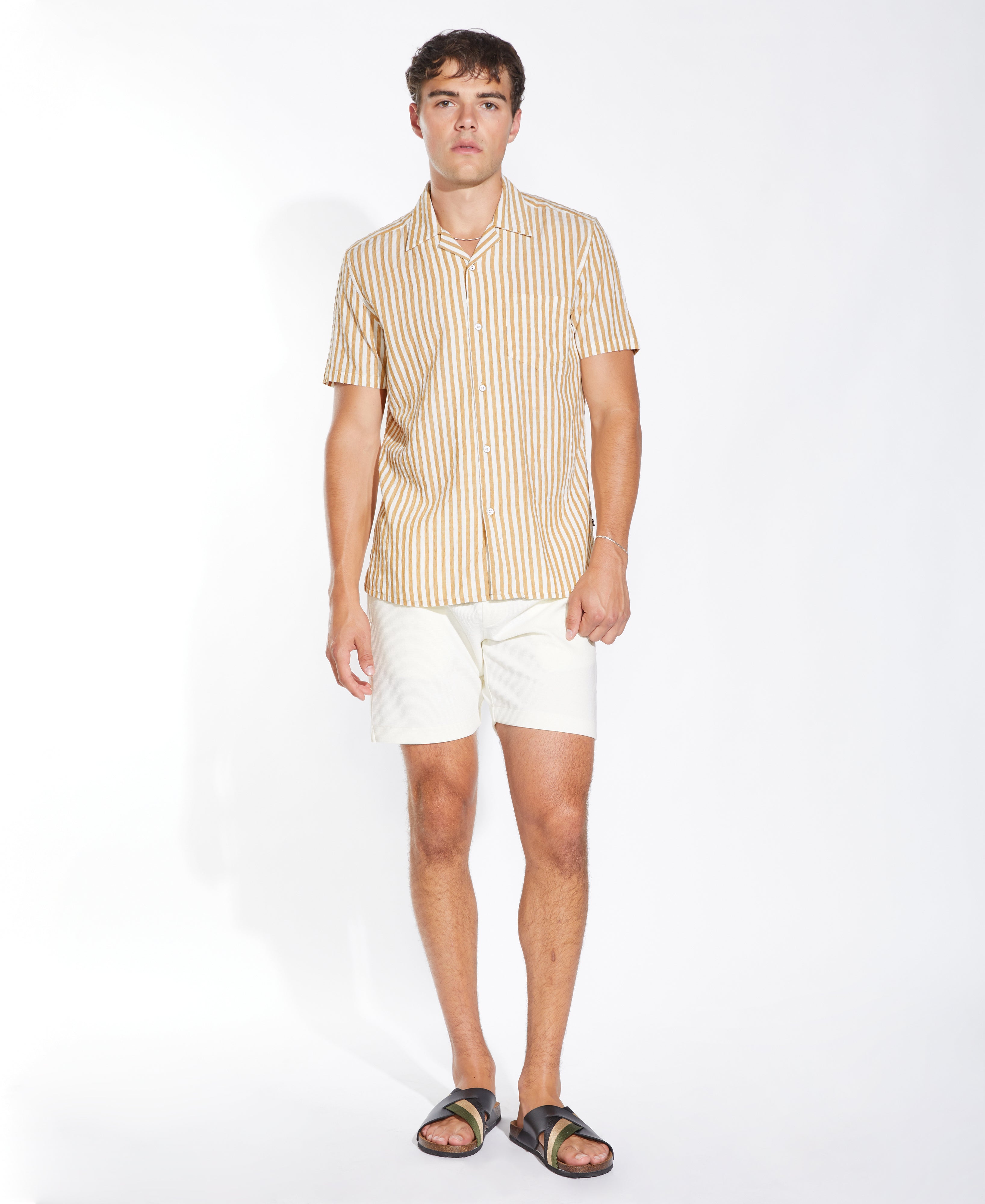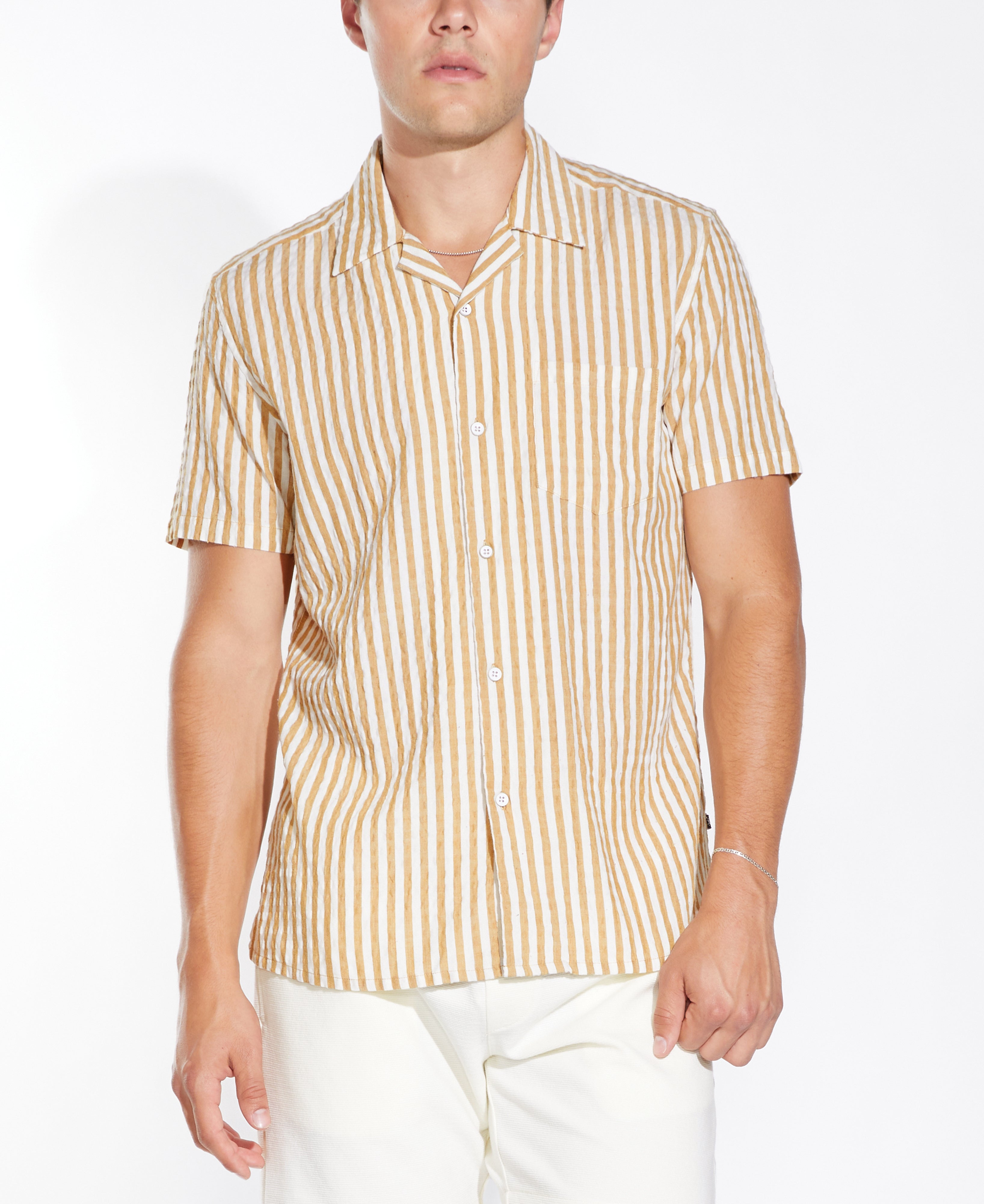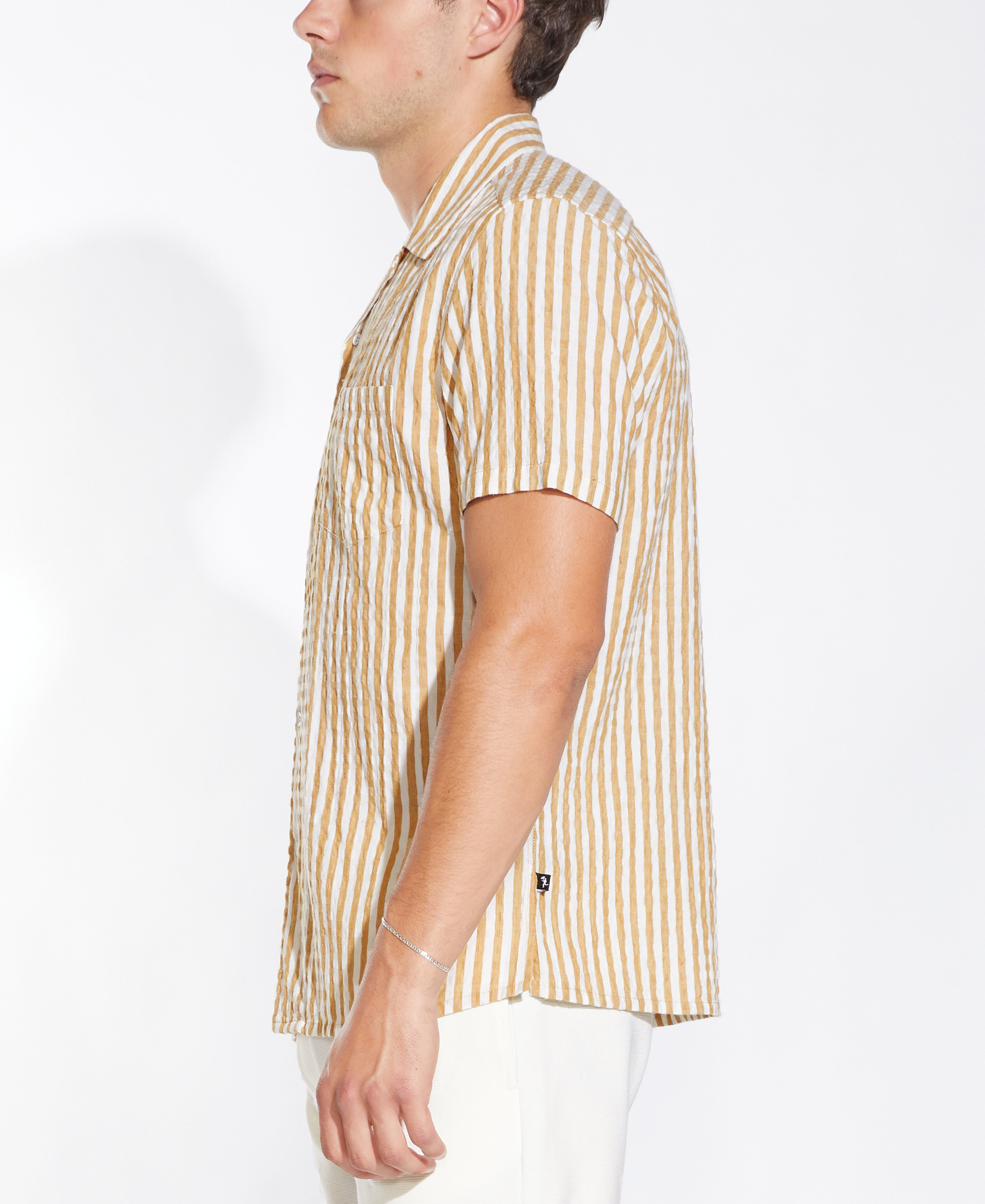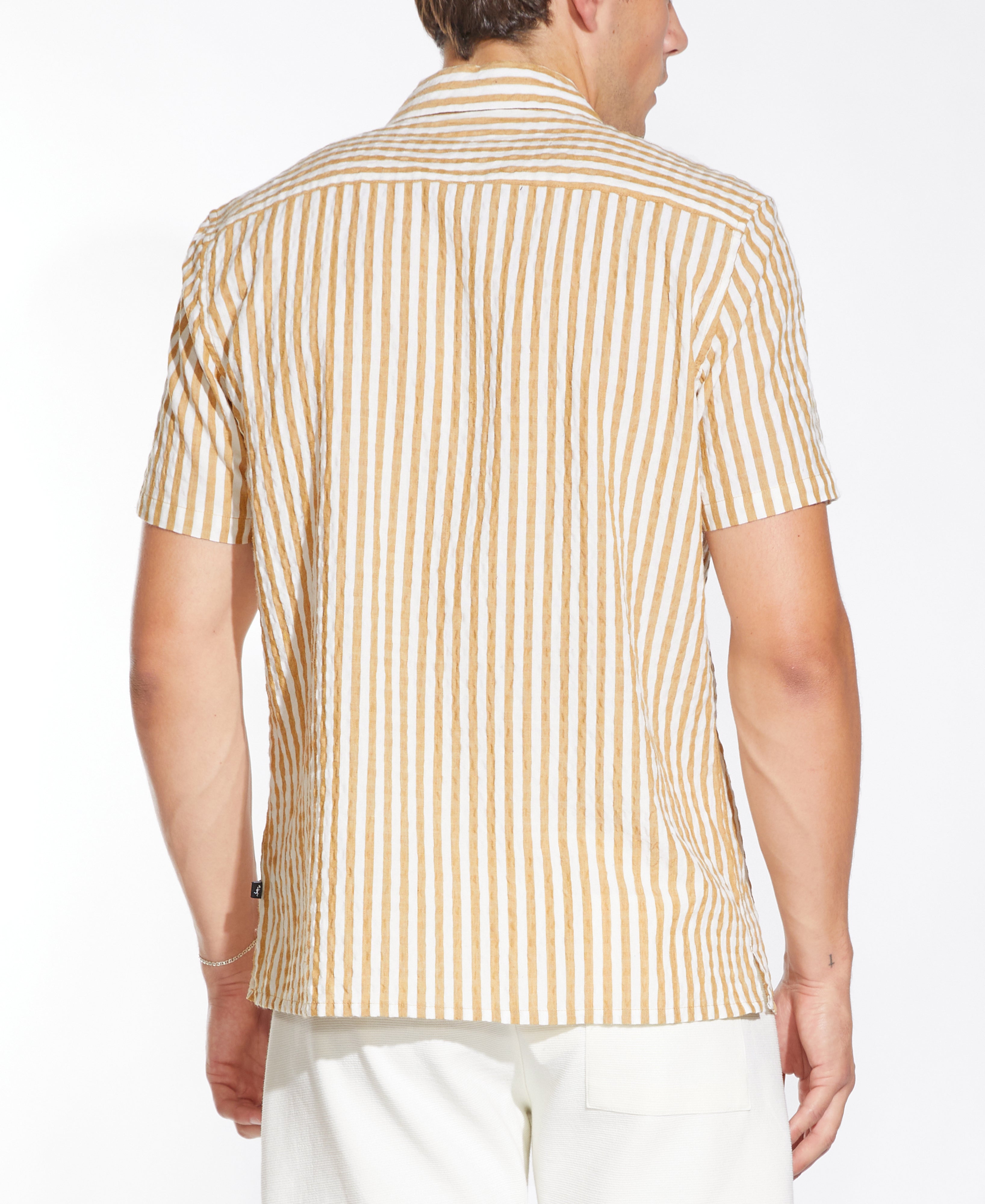 BARNUM |striped seersucker resort shirt | mustard