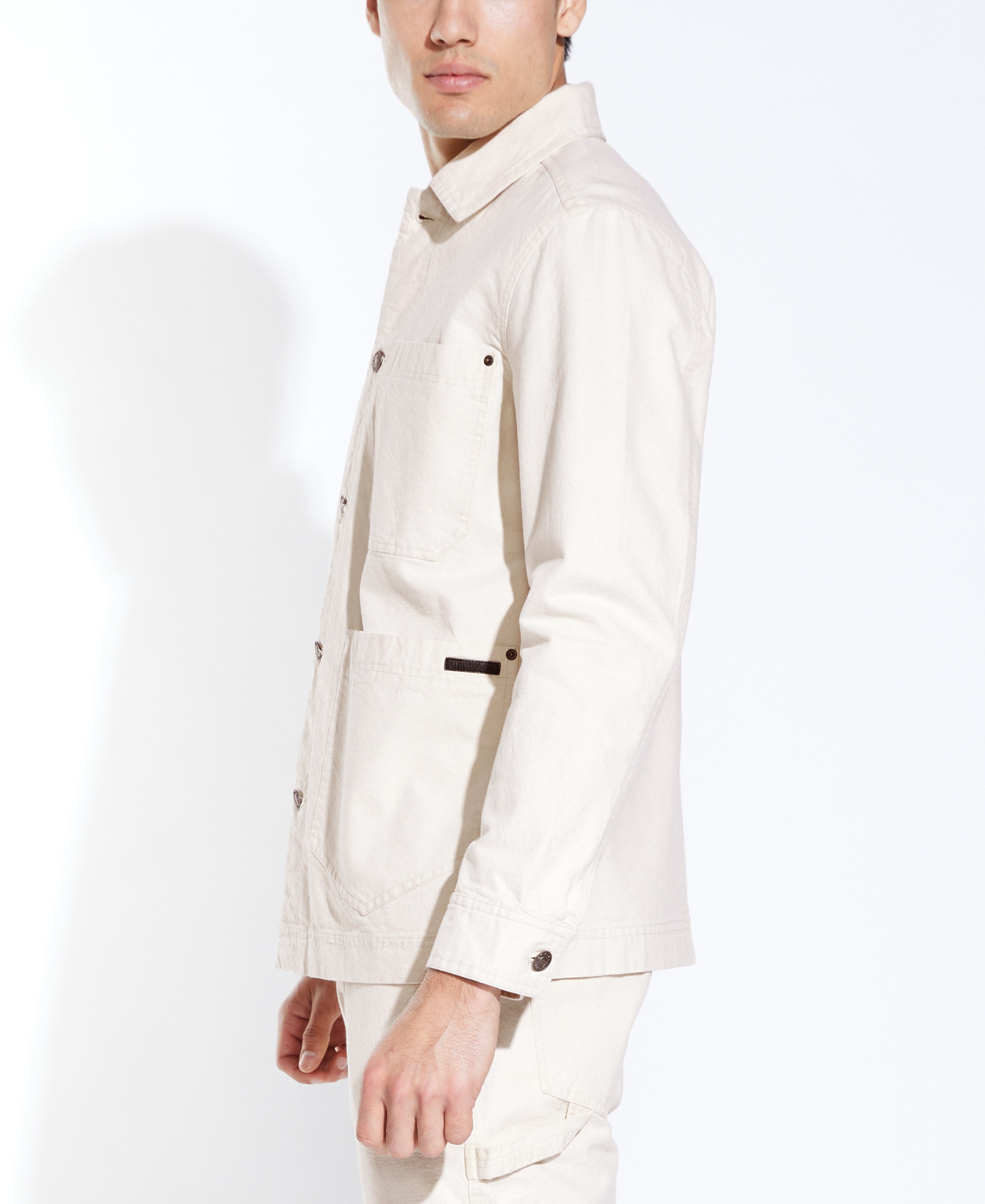 We melded American workwear functionality with the classic French chore coat and ended up with the Murphy. Clean lines abound echoing French design while its mitered chest pocket, pointed hip pockets, signature tack buttons and rivets pay respects to classic 19th century American dungarees. Issued in our new oversized fit, it truly makes this jacket perfect for layering and will for sure transcend seasons.
