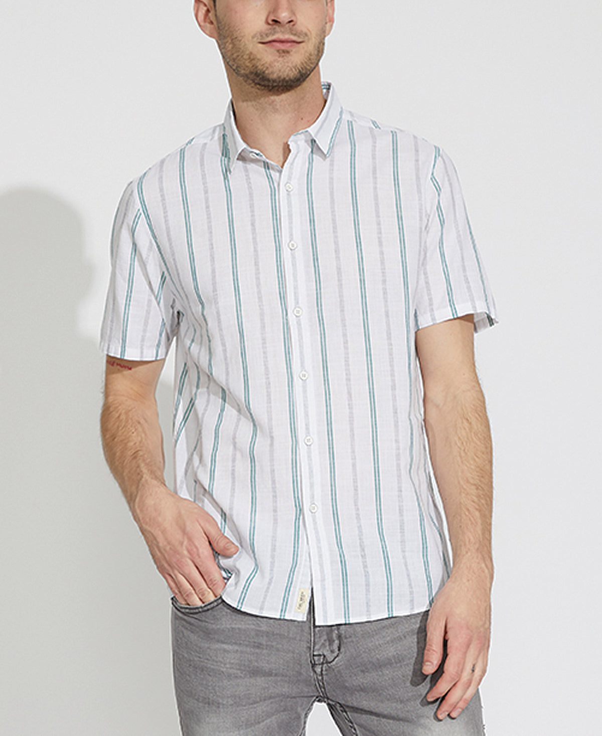 IVY | striped woven shirt | white/green