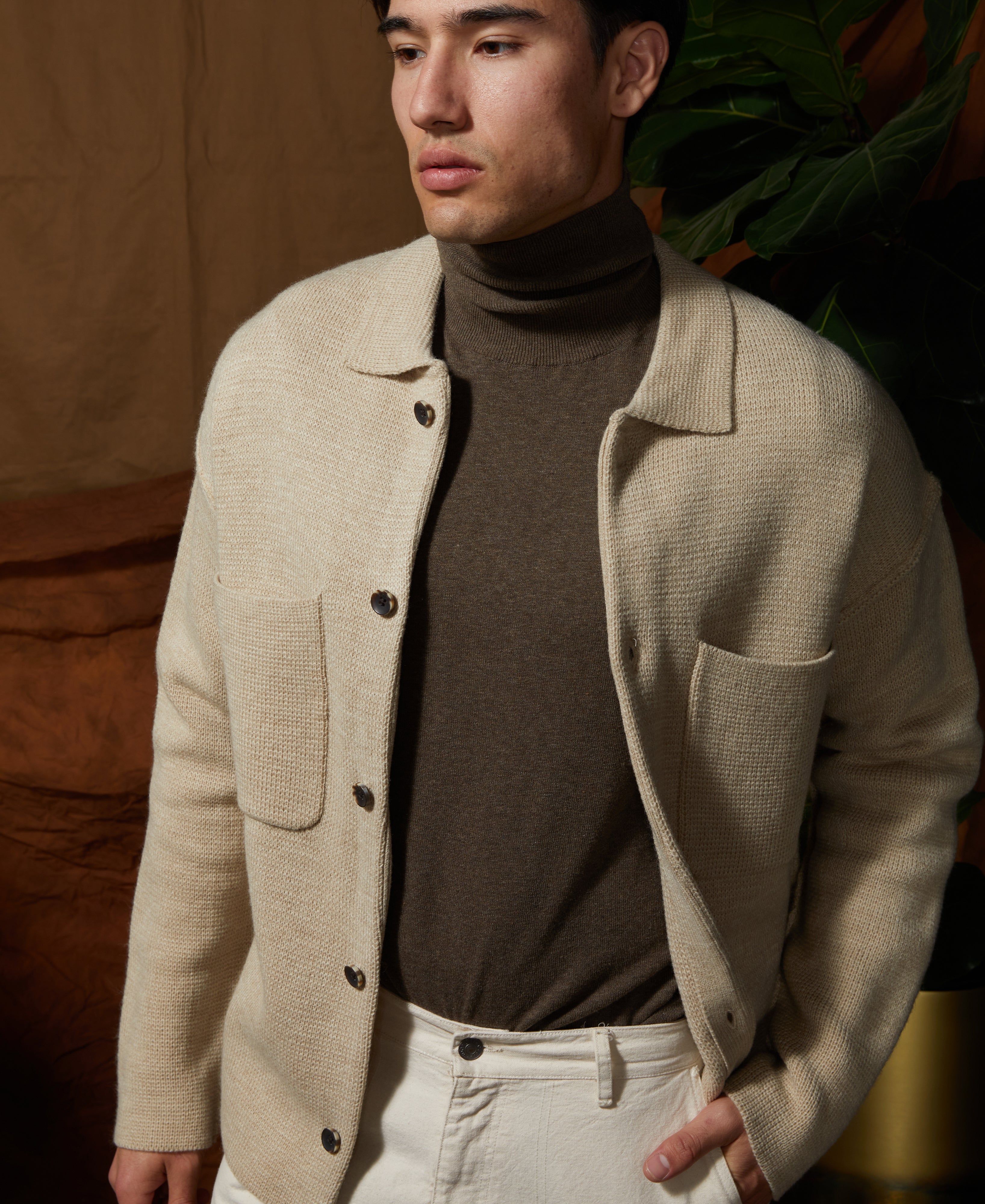 BEATON | boxy fit sweater shirt jacket | heather oatmeal